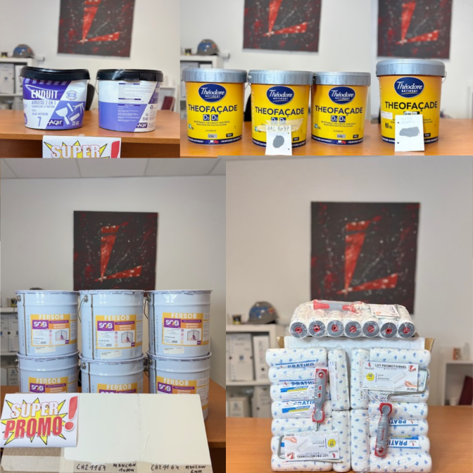 ENDUIT N°7, THEOFACADE avec teinte, LOT DE MANCHON, PEINTURE ANTIROUILLLE sont maintenant disponible à un prix spécial pour une durée limitée.