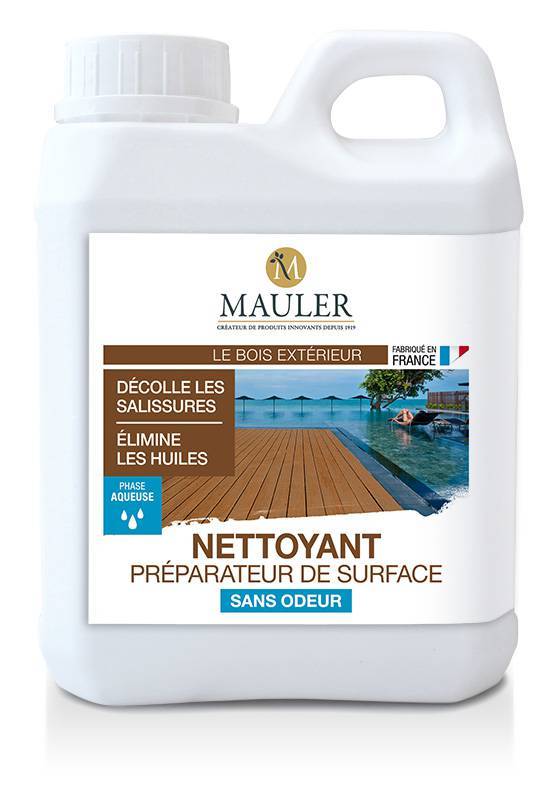 - Le nettoyant préparateur de surface sans odeur Mauler permet l'entretien périodique tous les bois en extérieur comme les terrasses, les bardages et les menuiseries extérieures.
