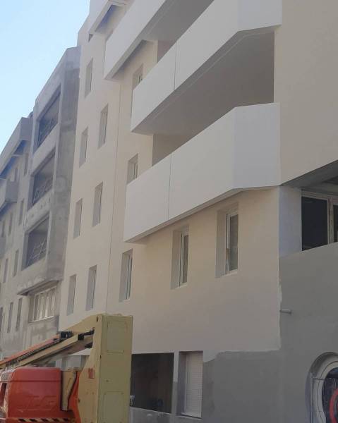 Afin de redonner un aspect lisse à une façade structurée, DECODIS PEINTURES préconise un enduisage complet au CX62 Rualaix et une mise en peinture façade avec un système D2 en 3 couches ( Ravalprim primaire et deux couches de Theofaçade).