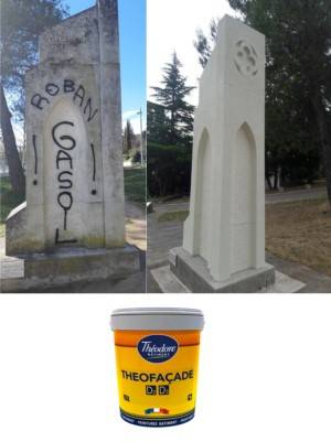 Pour repeindre vos façades, THEOFACADE D2 D3 est un revêtement semi-épais teintable en machine dans toutes les teintes du nuancier THÉODORE BÂTIMENT.