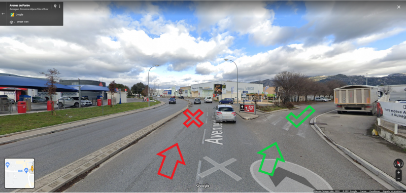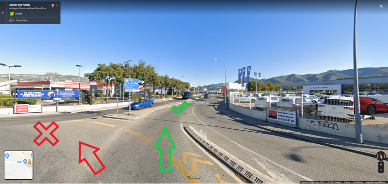 Une carte avec l’itinéraire pour aller jusqu’à notre magasin vue du Satellite.